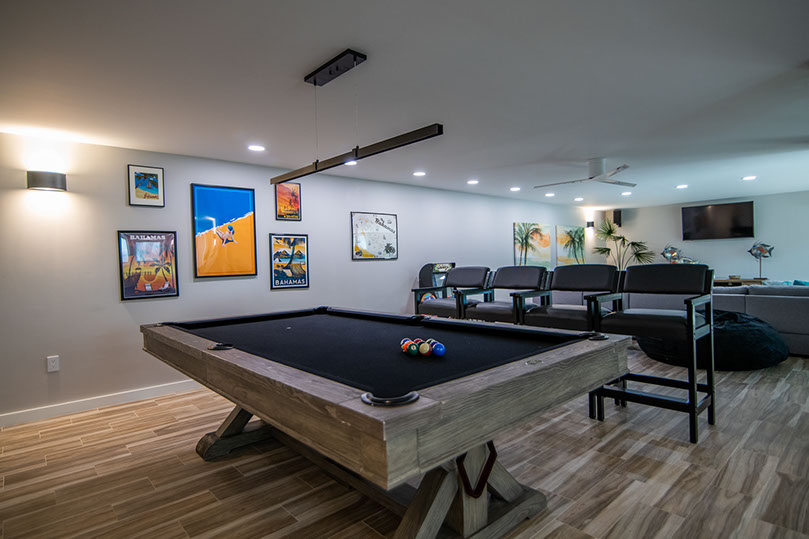 Enjoy a late night game of pool! With seating for 4, a dry bar with beverage fridge and sound system, your group can play all night!