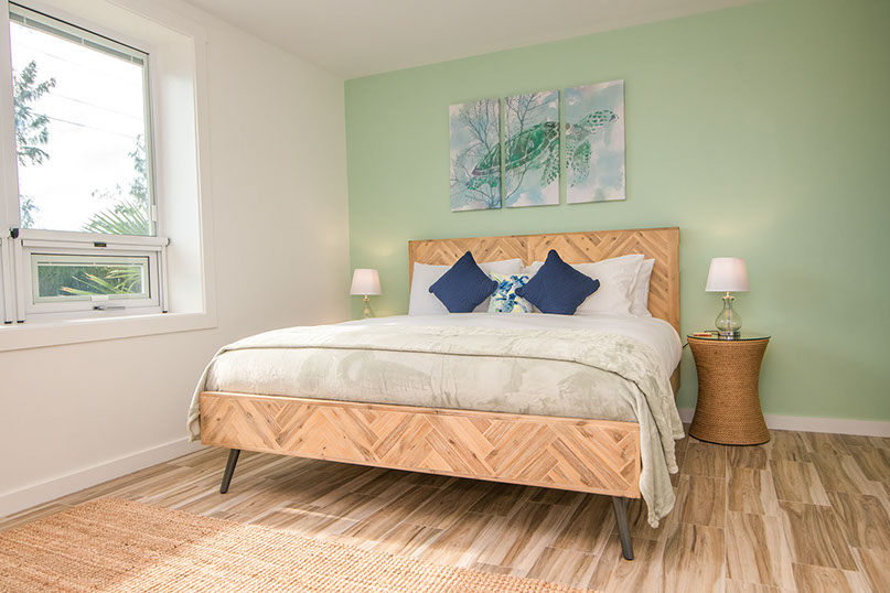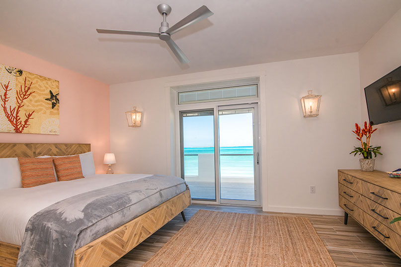 The coral room is a large corner oceanfront bedroom on the main level. It also has a walkout to the