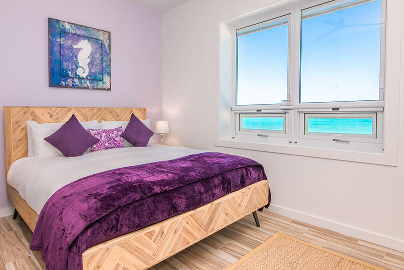 The seahorse room is an oceanfront bedroom on the top floor. It is the smaller of the king suites but
