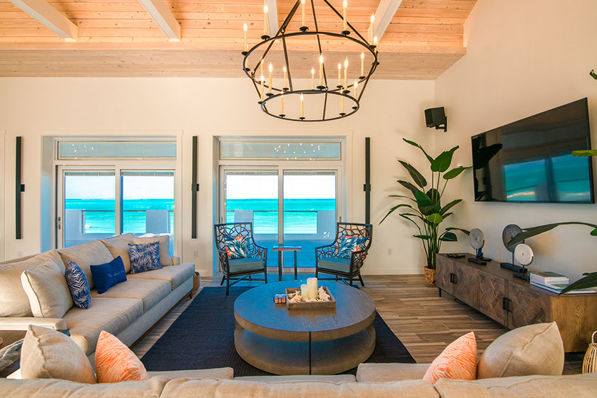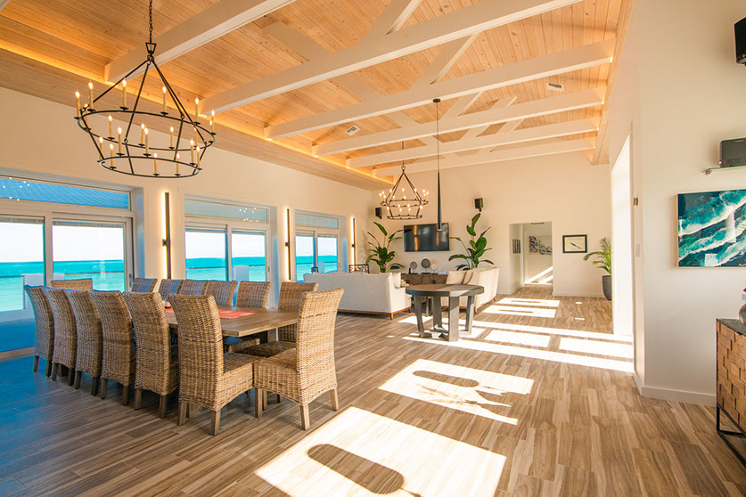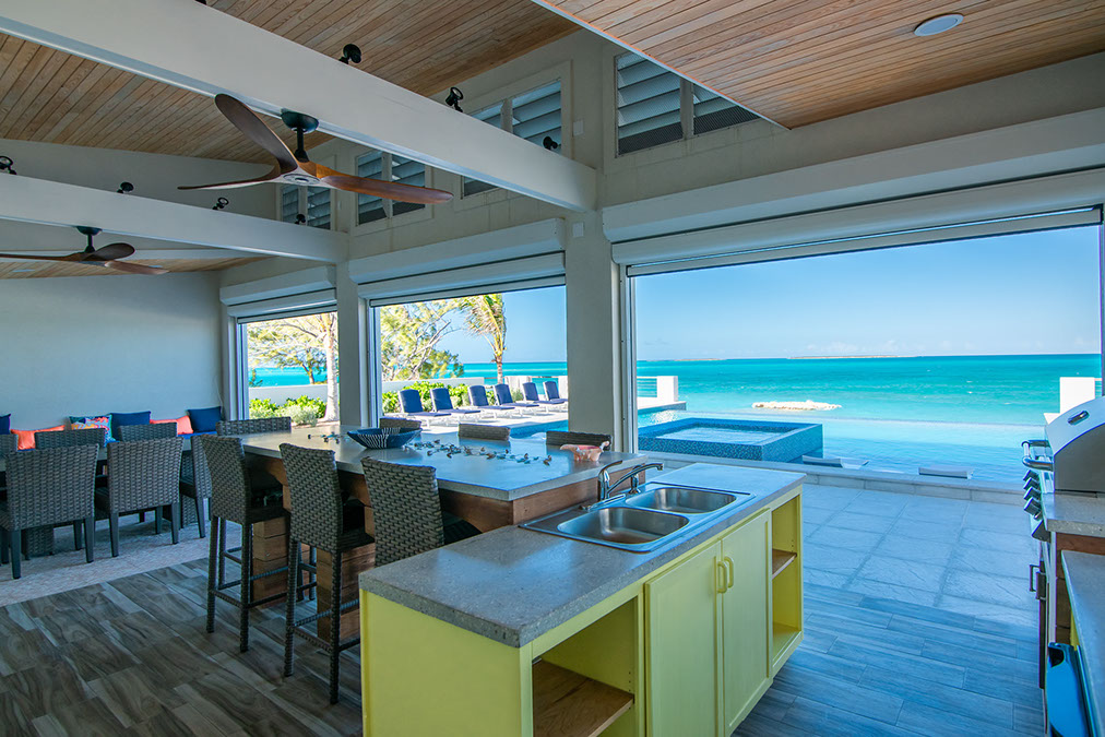 Be greeted by the views that only Exuma can provide. The open floor plan, high ceilings and three large sliding doors provide lots of light and beauty.